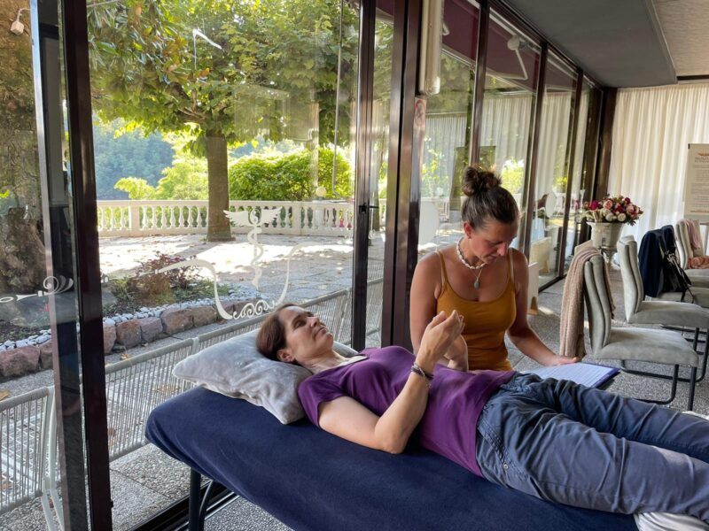 Di. 16.09.2025-Nos – Weiter geht es mit dem Thema Affirmationen, deren Bedeutung und Anwendung. Es gibt viele Fragen, Anregungen und Impulse. Annette behält die Ruhe und die Übersicht und führt alle zum Ziel. Dabei wird auch viel gelacht, weil sie immer wieder von eigenen Erlebnissen berichtet. Auch unsere Teilnehmerinnen bringen uns oft zum Lachen. So verfliegt die Anspannung immer mehr und durch die Freude fällt das Lernen und Verstehen allen viel leichter. Als dann die erste Partnerübung zur Diagnoselöschung ansteht steigt der Fragenpegel. Über den Tag verteilt gibt es noch weiteren Lernstoff und Übungen. Nach einer Gruppeneinweihung berichten alle von ihren Erlebnissen und Wahrnehmungen. Hierbei wird wieder mal deutlich, wie sich unser Bewusstsein mit jedem Tag der Ausbildung weitet und wir ein immer tieferes Verständnis vom Leben bekommen. Zum Abschluss des Tages geht es noch mal an die Liegen und gegenseitig wird das gelernte in der Praxis angewendet.