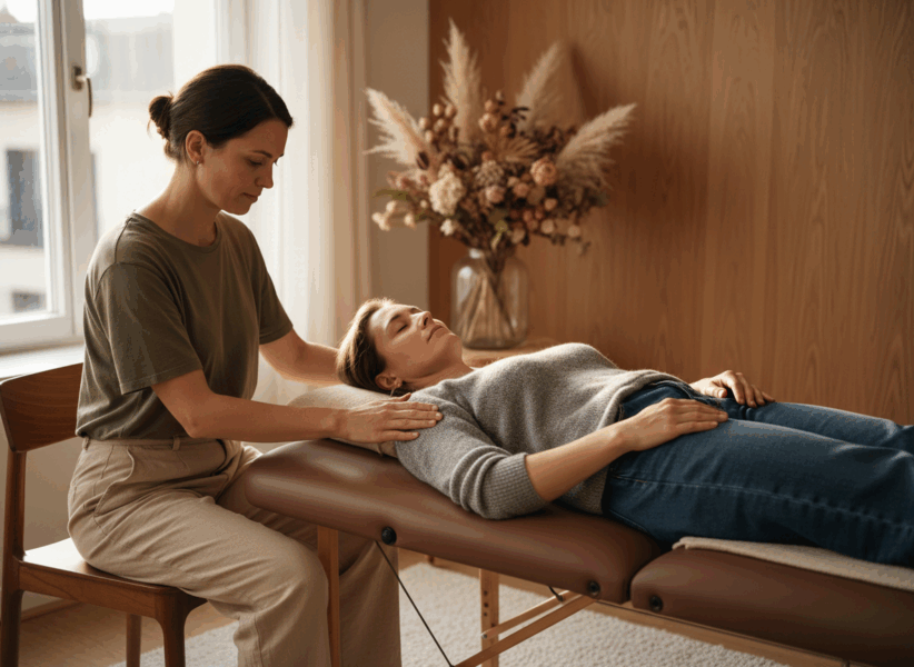 Das Schnupper-Seminar der École San Esprit in Köln bot am 12. Oktober faszinierende Einblicke in die praktische Anwendung ganzheitlicher Heilarbeit. Ein Highlight war die Demonstration des Spanda Impulses, einer feinen und kraftvollen Technik zur Wahrnehmung und energetischen Ansprache von Spannungsmustern im Körper. Eine Teilnehmerin zeigte deutliche körperliche Ungleichgewichte: Verschiebung im Atlasbereich, Beckenvedrehung und asymmetrische Körperstatik. Nach dem Spanda Impuls reagierte ihr Organismus beeindruckend – Muskeln arbeiteten, Faszien pulsierten, die Körperlinie veränderte sich. Der anschließende Muskelkater zeigte, wie intensiv der Körper an seiner Neuausrichtung arbeitete. Solche Momente verdeutlichen, dass der Körper weiß, wie Balance sich anfühlt – und manchmal braucht es nur einen präzisen, achtsamen Impuls, damit echte Veränderung beginnt.