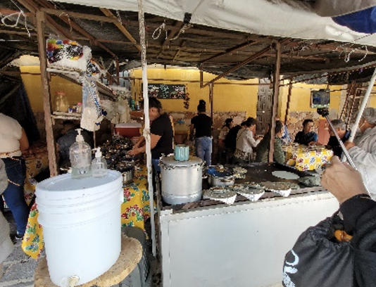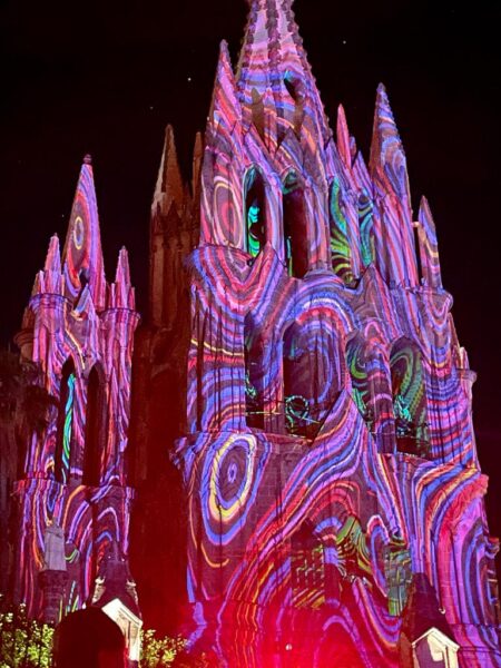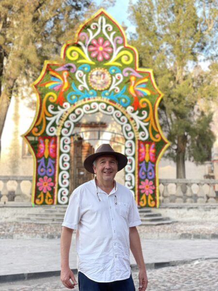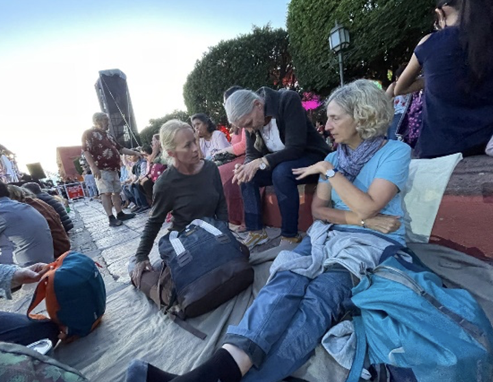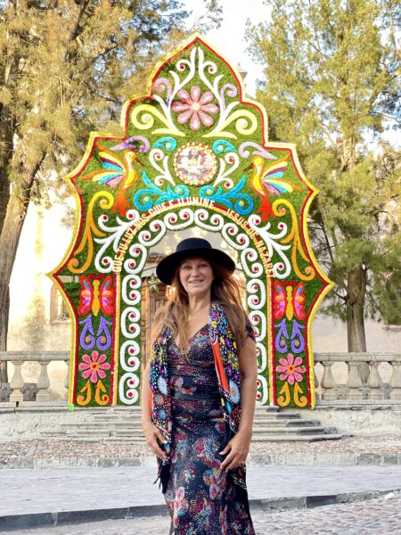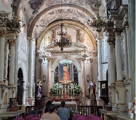 An diesem Freitag, es ist der 12.August 2022 und unser 10. Tag in San Miguel de Allende. Wir fuhren wieder in der Frühe zur La Gruta, unserer Wellness Quelle. Hier entspannten und schwebten wir und füllten unsere Zellen mit Heilwasser. Die Thermekatze, „Nieve“ ( Schnee) trank dort auch zu unserem Erstaunen das Heilwasser.  Sie bekam zusätzlich eine Heilsitzung, welche sie schnurrend genoss. Der Rückweg führte durch einen kleinen Ort, Atotonilco, in dem wir einheimisch frühstückten und Cardamon Café tranken, köstlich und unvergessen. Vor der uralten Kirche positionierten wir uns feierlich fürs Gruppenbild. Das Innere der Kirche überraschte uns mit komplett ausgekleideten ruralen Wand- und Deckenmalereien.