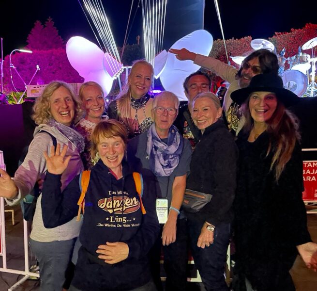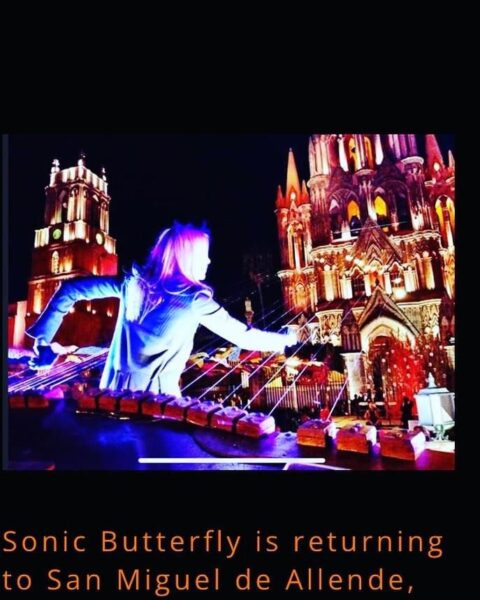 Am frühen Abend wurden wir wieder durch Rogers Vermittlung von der bekannten Künstlerin  eingeladen: Andrea Brook mit ihrer SONIC BUTTERFLIES Performance. Dieses Open Air Konzert bildete den Start- und Höhepunkt des Festivals in SMA.
